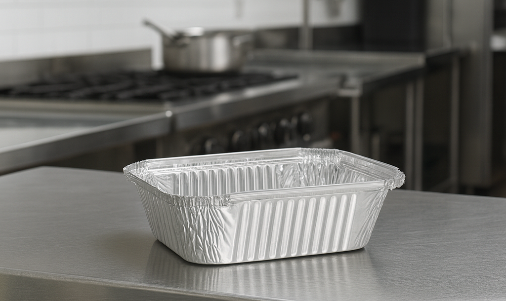 طبق فويل 420 هو طبق/علبة ألومنيوم صغيرة مستطيلة مخصصة لتعبئة وتقديم الوجبات الخفيفة أو الحصص الفردية. يتحمّل حرارة الفرن والتسخين، ومناسب للأكل الساخن والبارد زي الأرز، المكرونة، الخضار، أو الحلويات، وبيستخدم بكثرة في التيك أواي والدليفري لأنه خفيف وعملي ويحافظ على حرارة وجودة الأكل.